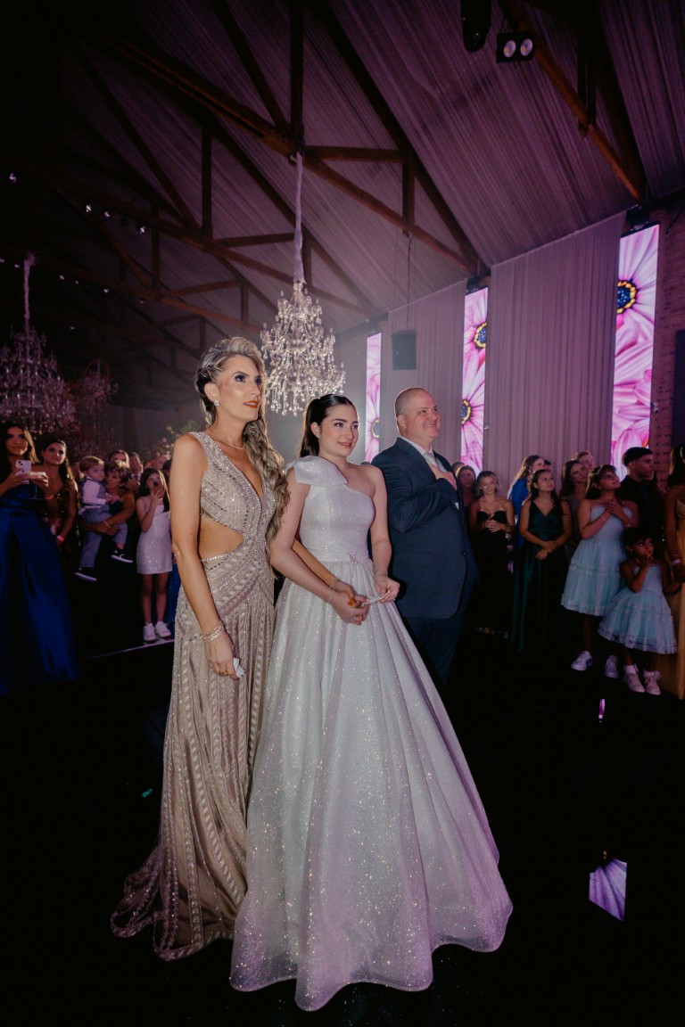 O cronograma da noite seguiu um ritmo perfeito: recepção calorosa, jantar especial e uma entrada triunfal que deixou todos sem fôlego. Depois das valsas, homenagens e do parabéns, Ianne mostrou seu lado mais animado na dança com os familiares e amigos. Assim, entre brilho, música e muita diversão, a festa da Ianne foi um retrato fiel de quem ela é. Espontânea, alegre e pronta para viver a vida de coração aberto!