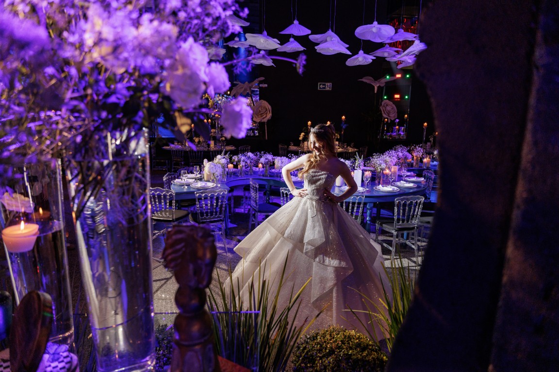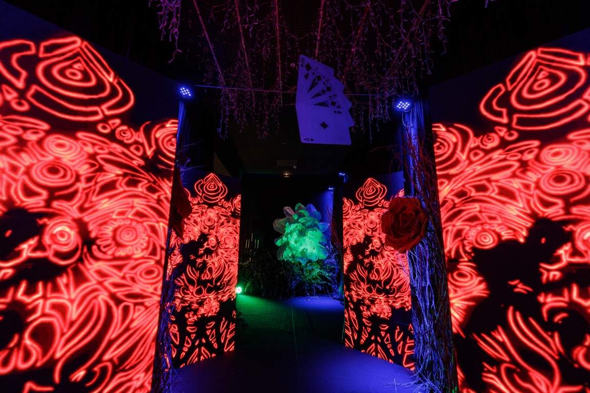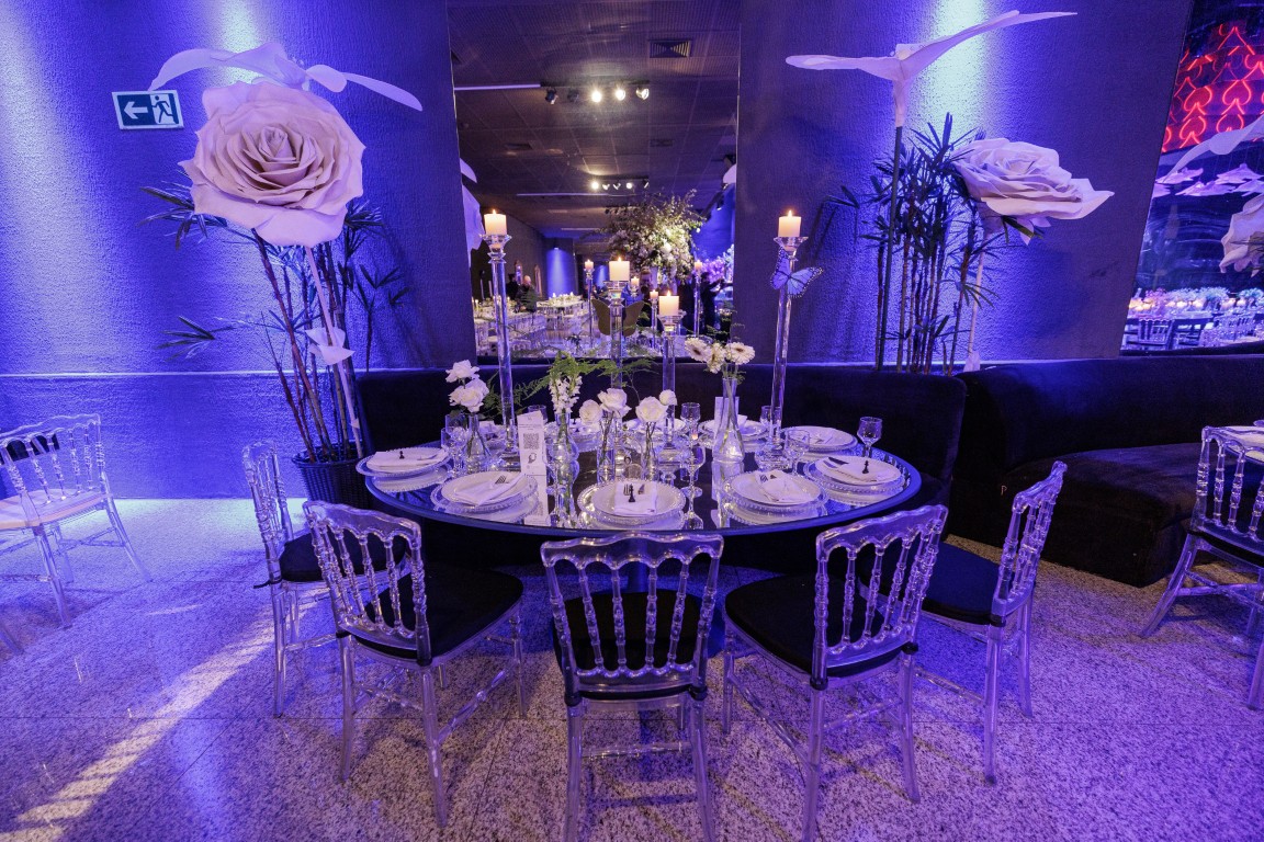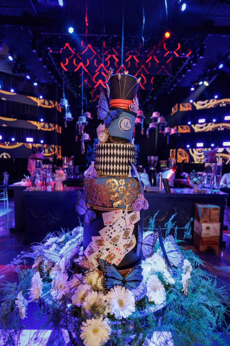 Personagens vivos do País das Maravilhas recepcionavam os convidados e circulavam pelo evento, intensificando a sensação de imersão e encantamento. No auge da noite, um vídeo lúdico mostrou a aniversariante surgindo como se ela própria se transformasse nos personagens do filme. Em seguida, o painel de LED subiu, revelando-a em um momento tão mágico que fez todos acreditarem, mesmo que por alguns instantes, que a magia pode ser real.