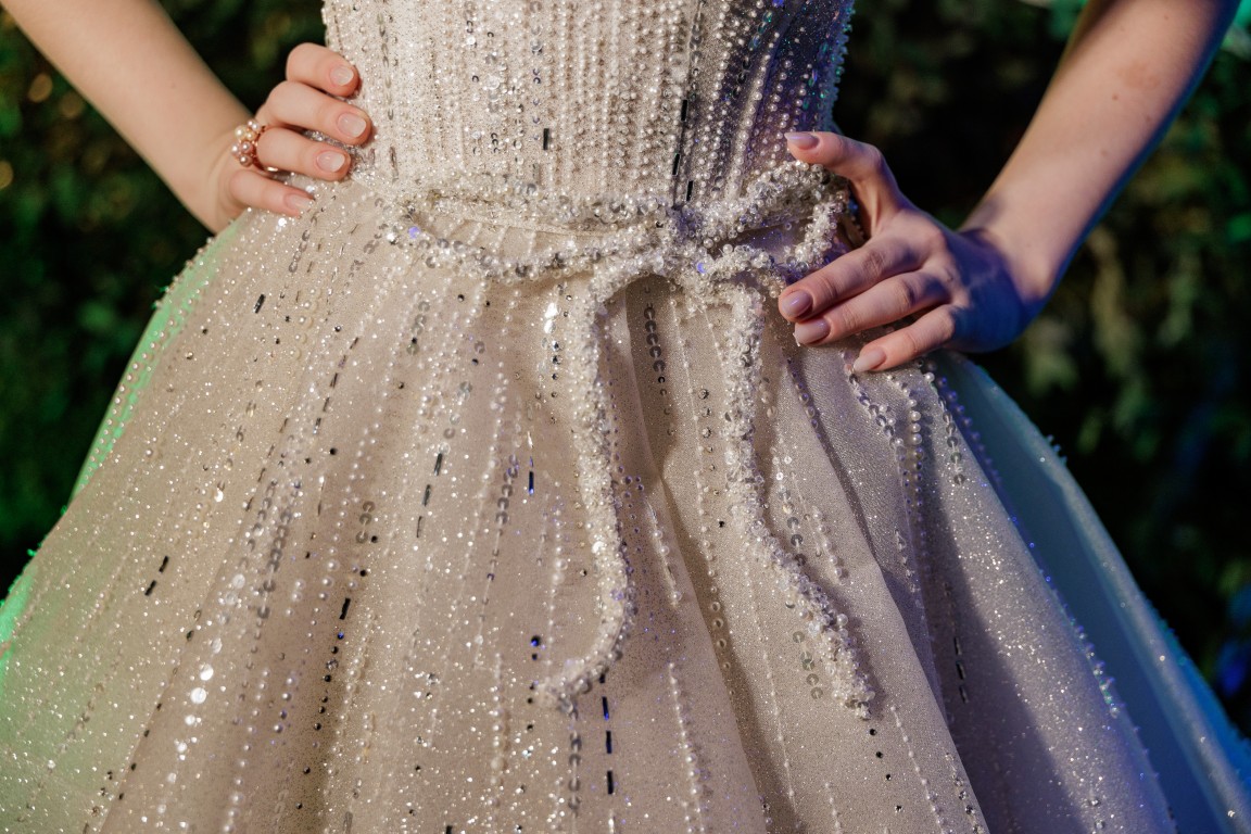 Os vestidos da Malu contaram, em três atos, a magia da sua festa de 15 anos temática. Na recepção, ela surgiu poderosa em um modelo vermelho com uma rosa em destaque, remetendo ao jardim da Rainha Vermelha, produzido pelo Atelier Silvia Fregonese. Em seguida, trocou para um modelo branco bordado, digno da Rainha Branca, também assinado pela estilista. Por fim, brilhou em um macaquinho azul-marinho confeccionado pela própria avó materna – um toque afetivo e cheio de significado para encerrar a noite com emoção e estilo.